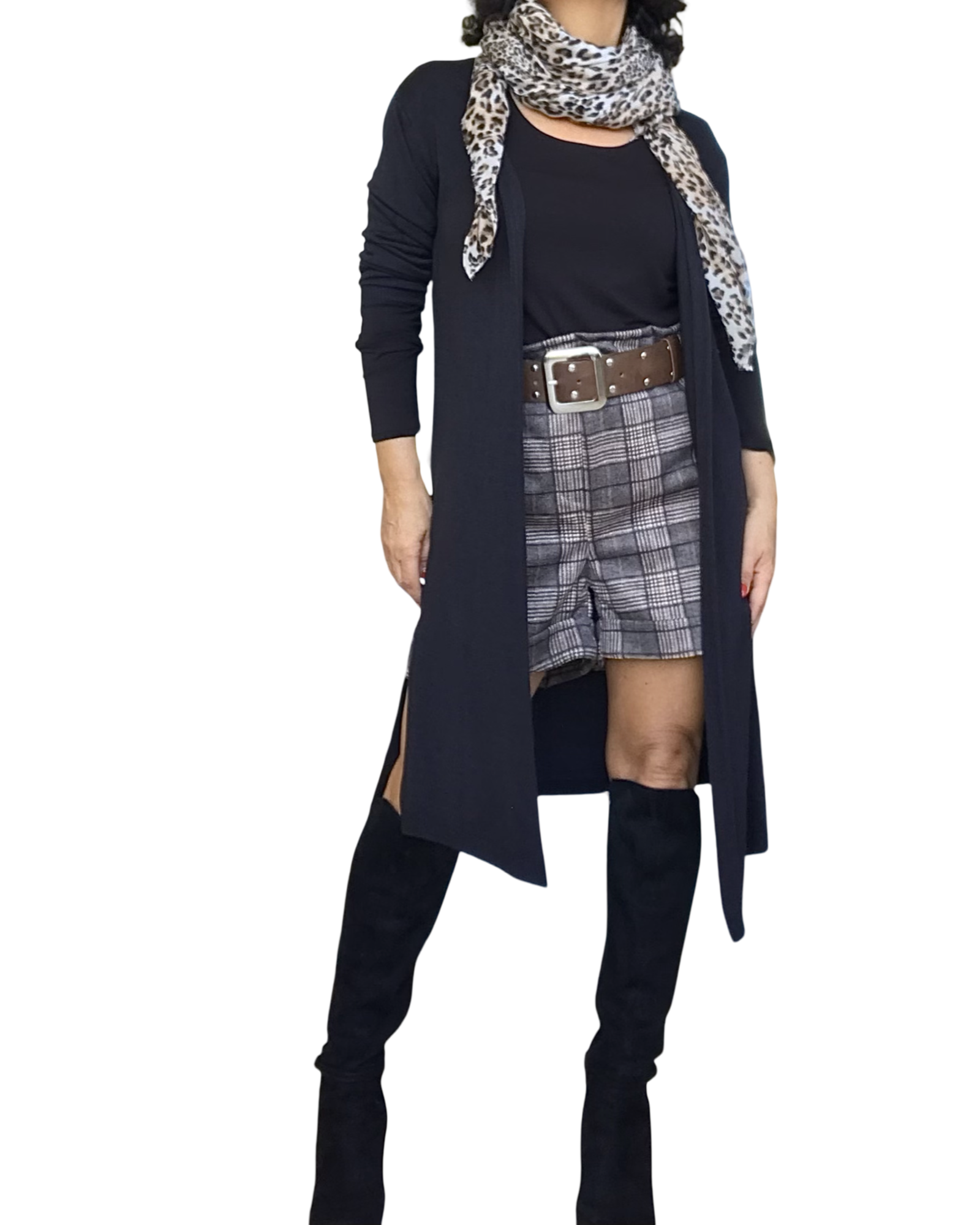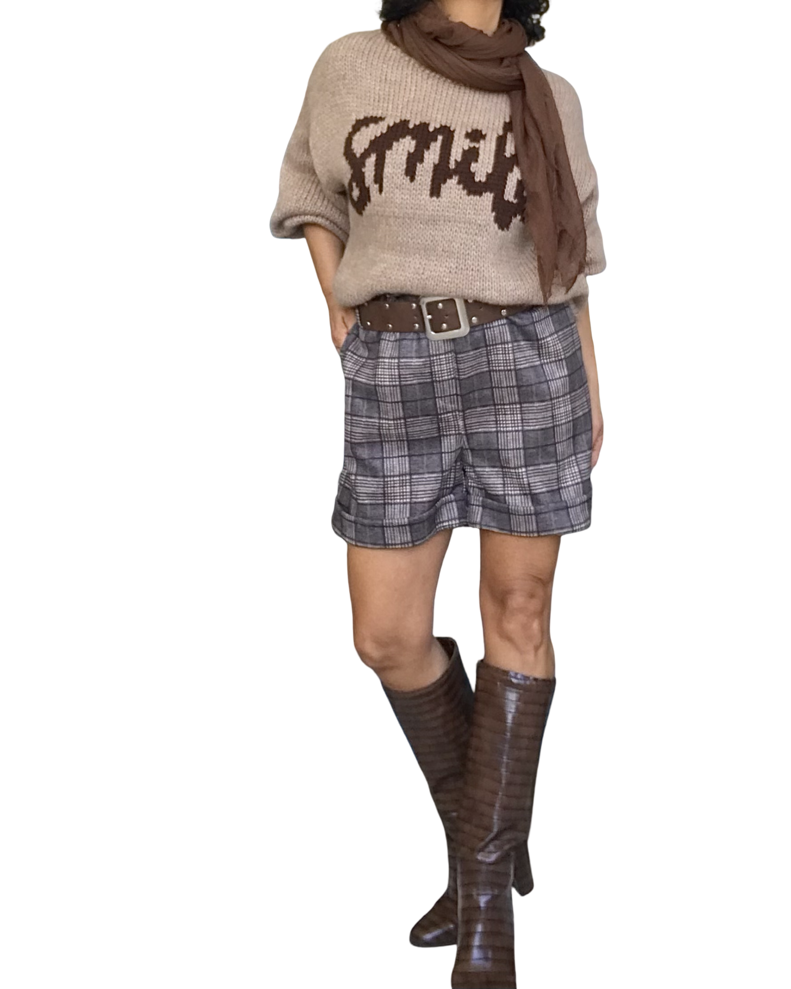 Élégant et confortable, le short prince de Galles en ultra suède noir et beige allie style et douceur 🖤🤍. Sa taille élastique et sa coupe structurée offrent une silhouette flatteuse et actuelle. Avec son revers de 5 cm et sa ceinture assortie, il incarne la parfaite alliance entre chic urbain et confort moderne.