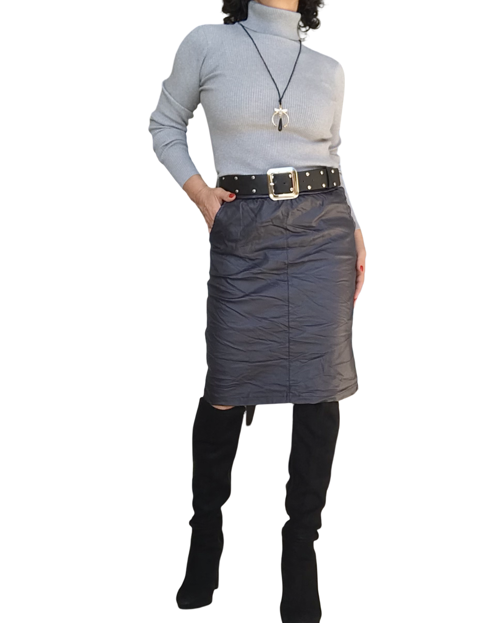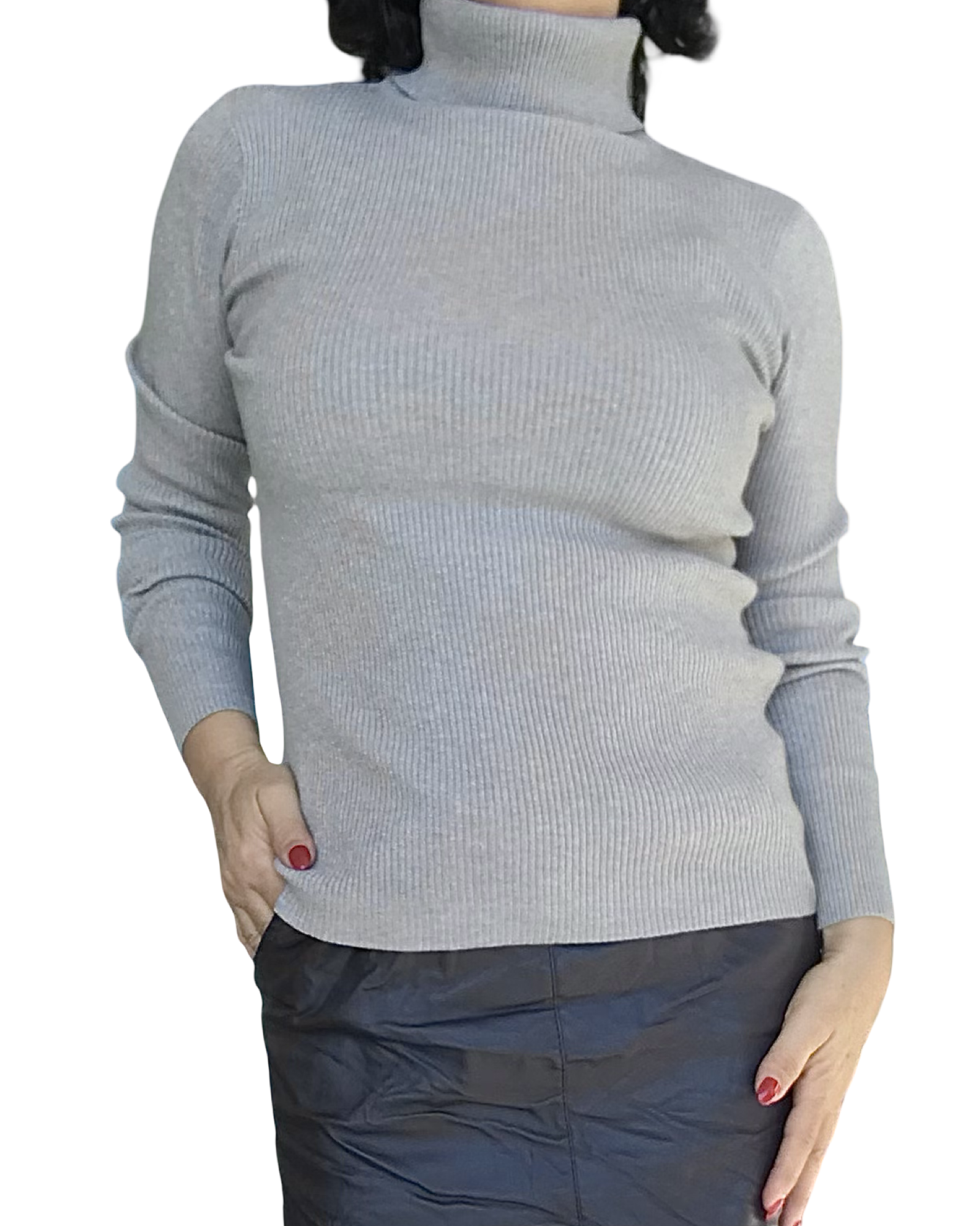 Chandail col roulé uni gris pâle avec lurex argenté – Description du produit
