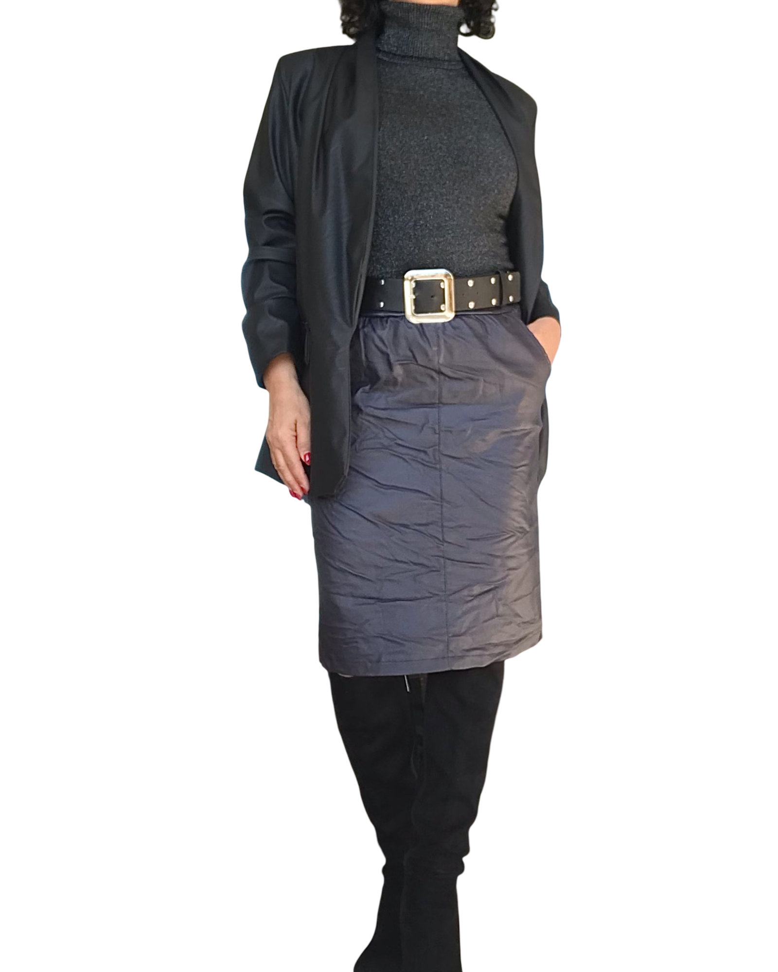 Jupe bleu nuit en similicuir à taille élastique – Conseils et style