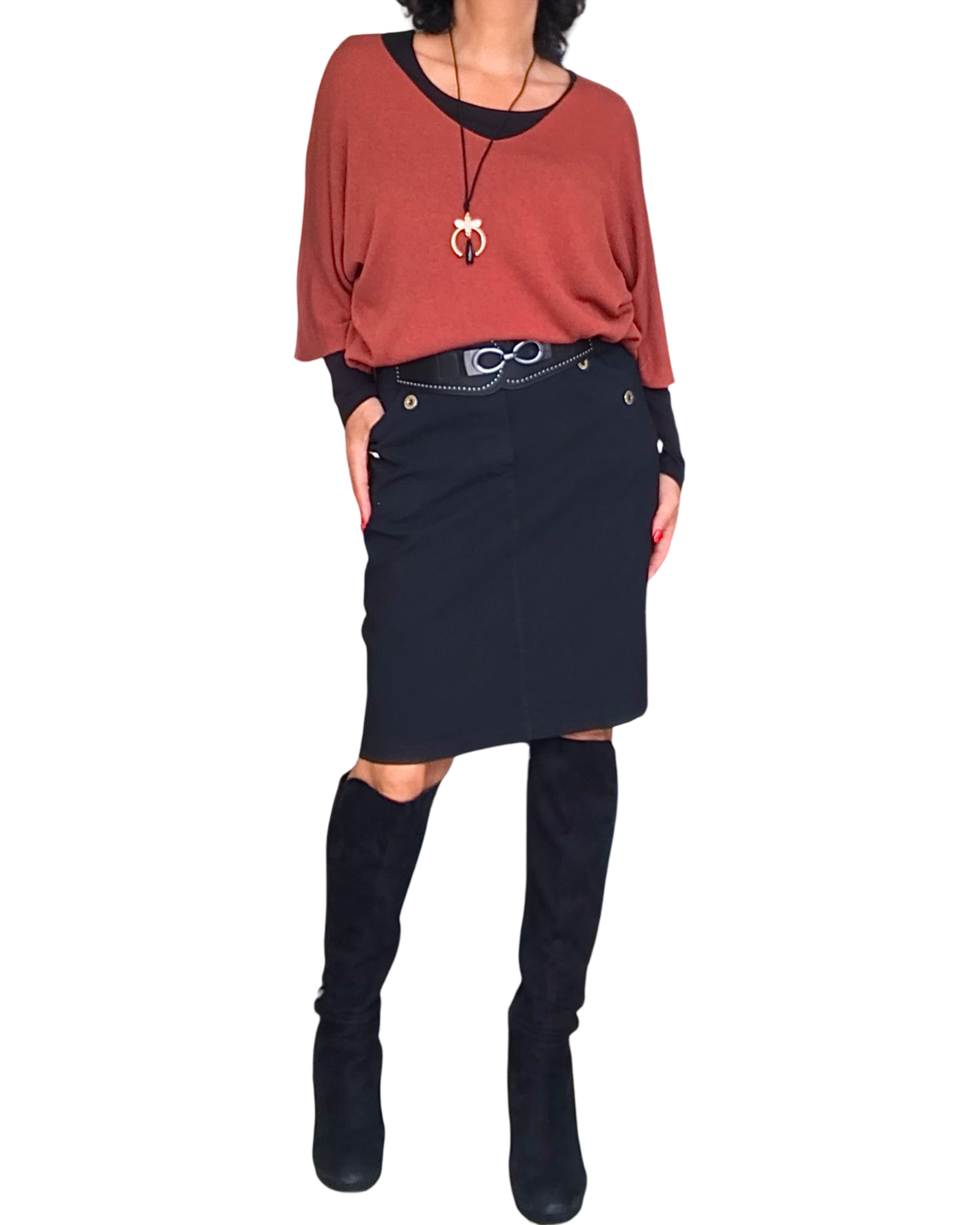 Ce chandail orange brûlé séduit par sa légèreté et son confort. 💫 Son tricot doux et fluide en fait une pièce quatre saisons, parfaite seule ou en superposition. ✨