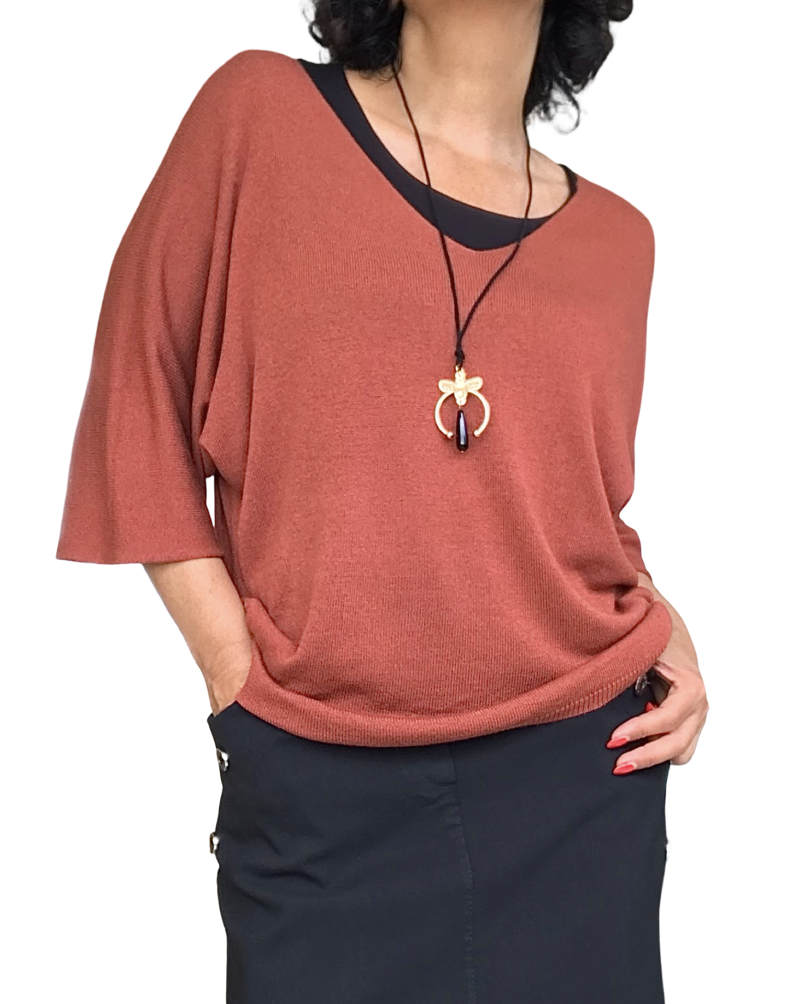 Chandail orange brûlé uni à manche 3/4 – Description du produit