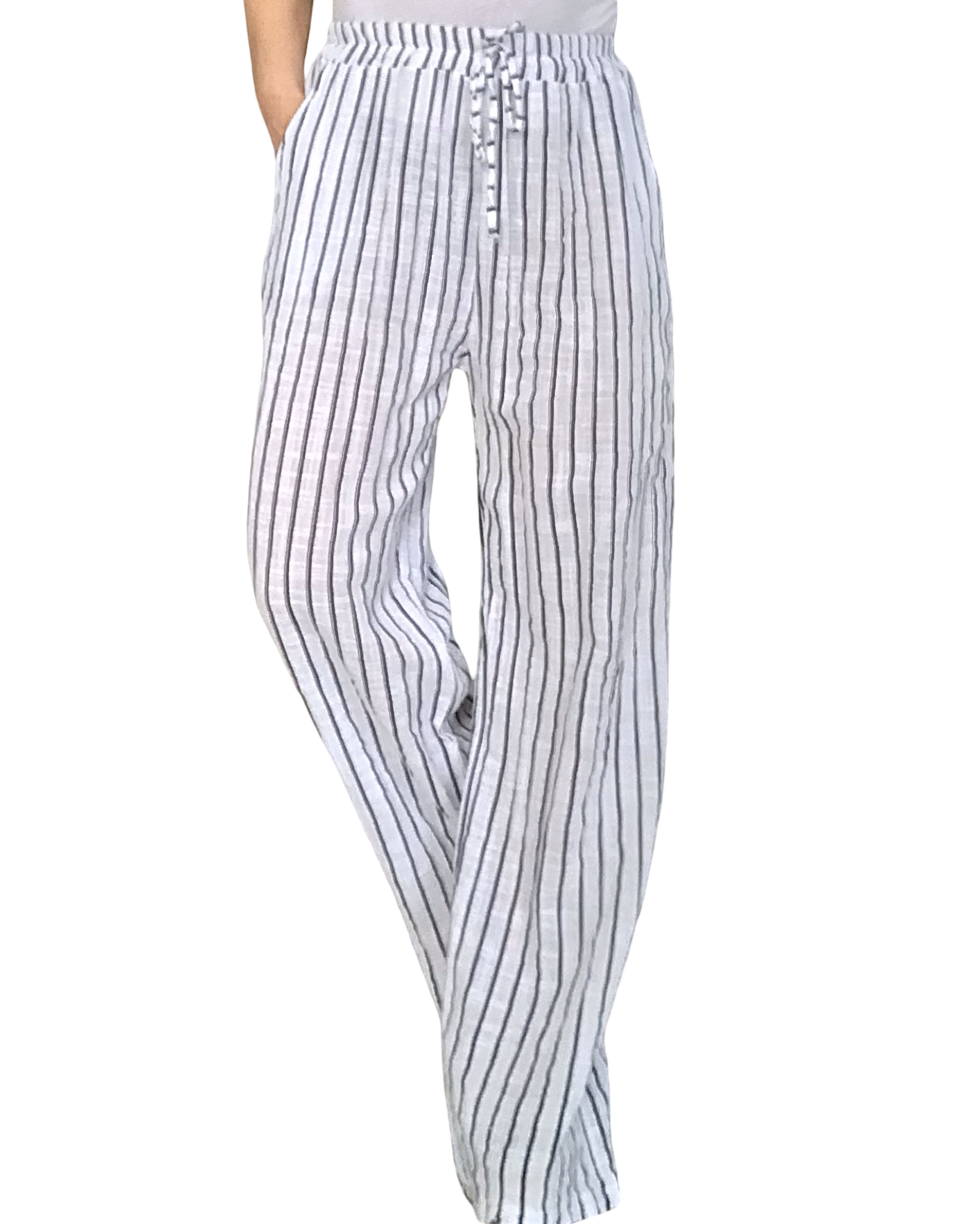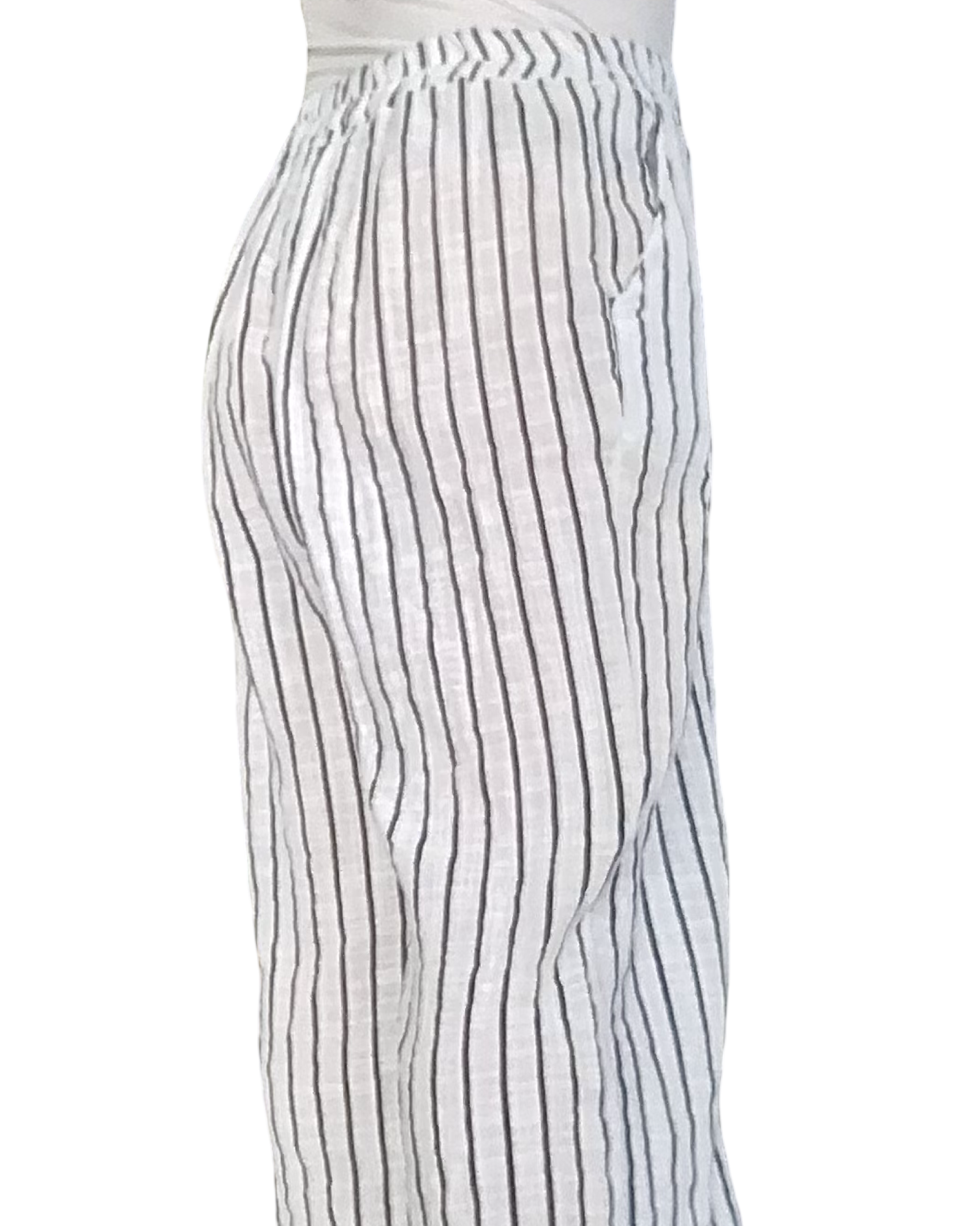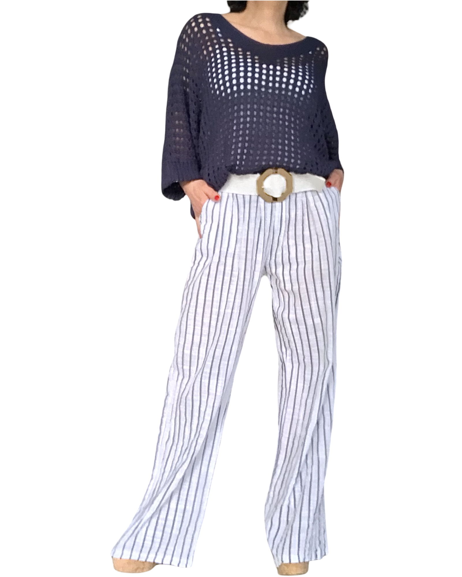 Pantalon droit Blanc Rayures Marine Taille Élastique – Description du produit