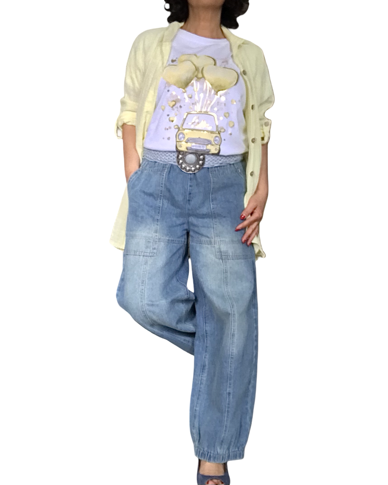 T-shirt blanc avec fiat et ballons jaune pâle en forme de cœurs